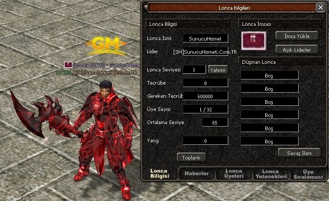 • Bu Sistemden Sadece Lonca Liderleri Faydalanabilir.